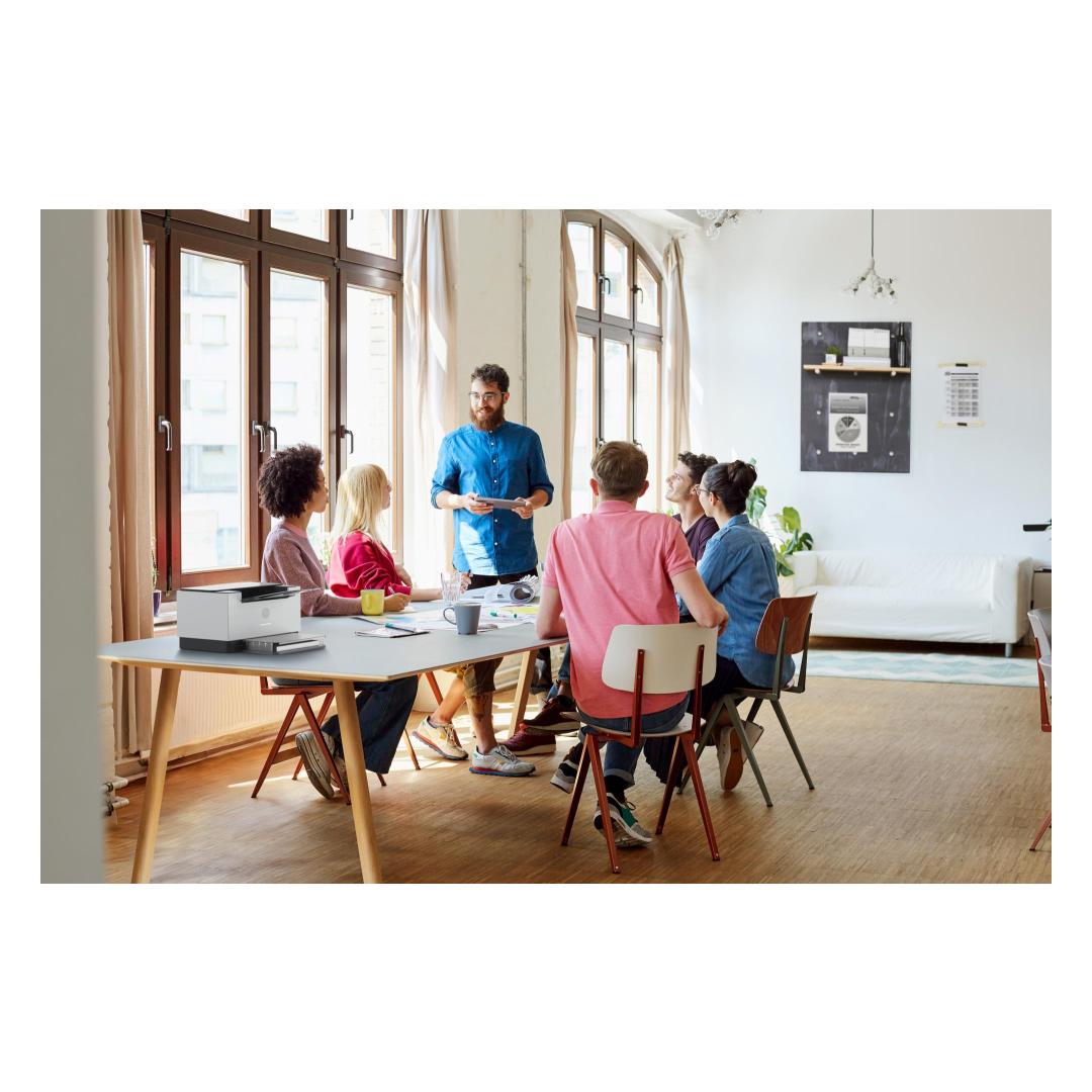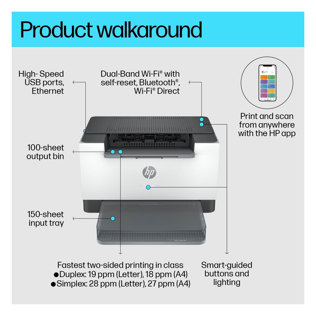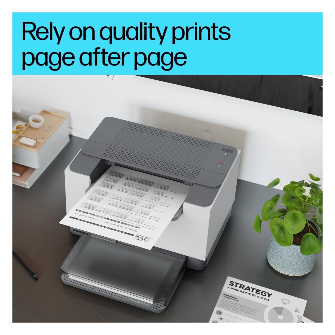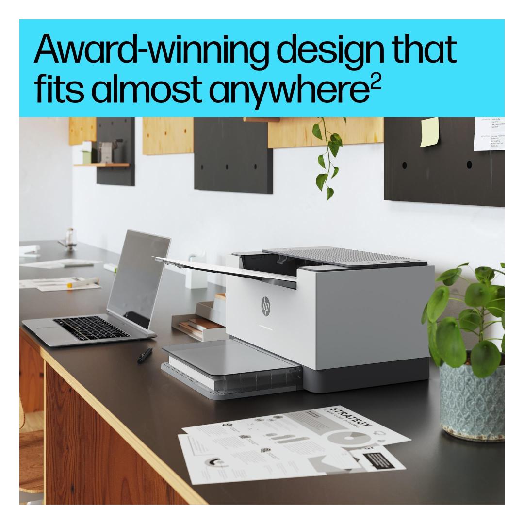 Fast, reliable performance. Exceptional value. Increase productivity with this high-performance black-and-white printer in an award-winning compact design.[3] Experience the fastest two-sided printing in class[9] and reliable Wi-Fi with self-reset,[1] plus simplified setup and time-saving features with the HP app.[3]
